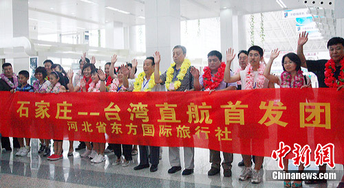 河北康輝國(guó)際旅行社導(dǎo)游桃子一邊組織團(tuán)隊(duì),一邊耐心為游客講解注意事項(xiàng)。“開(kāi)通直航以后大大方便了河北游客的出行,目前赴臺(tái)游前景被業(yè)界普遍看好,火爆程度超出預(yù)料。”