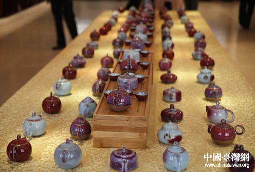 兩岸記者走進(jìn)河南許昌禹州,感受鈞都魅力。圖為禹州神垕孔家鈞窯作品(中國臺灣網(wǎng) 吳捷 攝)
