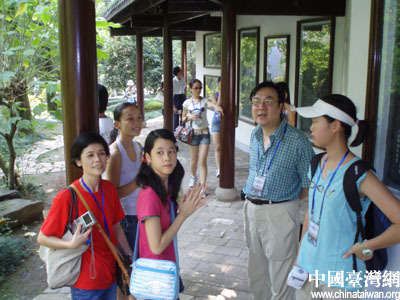 副團長諸大明正在和臺灣學(xué)子交流參觀書院心得