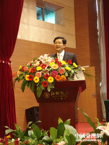江西省副省長趙智勇首先致辭,他向來自臺灣中南部的鄉鎮長和民意代表介紹了江西近年來經濟和社會的發展情況。