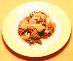 “油爆雙脆”是山東歷史悠久的傳統名菜。相傳此菜始于清代中期,為了滿足當地達官貴人的需要,山東濟南地區的廚師以豬肚尖和雞胗片為原料,經刀工精心操作,沸油爆炒,使原來必須久煮的肚頭和胗片快速成熟,口感脆嫩滑潤,清鮮爽口。該菜問世不久,就聞名于市,原名“爆雙片”,后來顧客稱贊此菜又脆又嫩,所以改名為“油爆雙脆”。到清代中末期,此菜傳至北京、東北和江蘇等地,成為中外聞名的山東名菜。