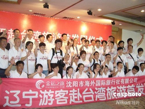 7月25日下午2時,由沈陽市海外國際旅行社組織的遼寧游客赴臺灣旅游首發團啟程,該團也是東北赴臺旅游首發團。 中新社發 沈殿成 攝