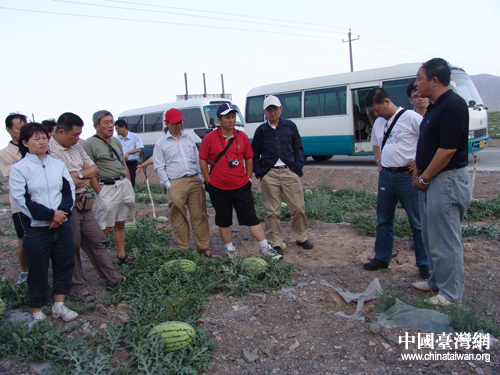 7月10日,在寧夏參加“海峽兩岸記者聯(lián)合采訪活動(dòng)”的兩岸記者一行參觀采訪中衛(wèi)市壓砂瓜基地。