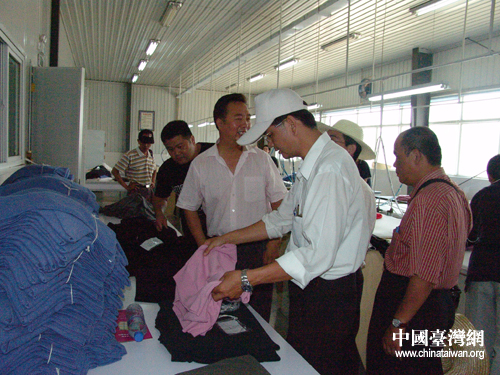7月9日,在寧夏參加“海峽兩岸記者聯合采訪活動”的兩岸記者一行參觀采訪靈武羊絨工業園