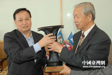 湖北省委書記羅清泉向臺北湖北同鄉(xiāng)會贈送禮品。(中國臺灣網湖北通訊員 陸勝 攝)