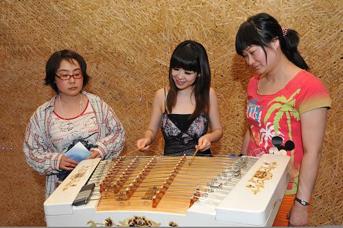 5月25日,來(lái)自臺(tái)灣的著名揚(yáng)琴演奏家盧念慈(中)在臺(tái)灣館內(nèi)為來(lái)賓介紹彈奏揚(yáng)琴的基本知識(shí)。當(dāng)日,位于世博園區(qū)A區(qū)的上海世博會(huì)臺(tái)灣館迎來(lái)第十萬(wàn)名游客——來(lái)自湖南省委老干部局的劉云祥。他獲得了一臺(tái)價(jià)值1萬(wàn)多元的52英寸液晶電視。新華社記者 何俊昌 攝