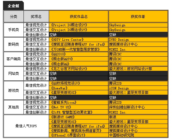 2010 Digital UI 優秀用戶界面設計大賽獲獎名單