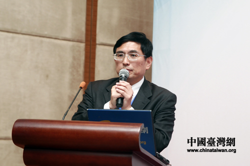 2011年兩岸互聯網發展論壇第二分論壇“兩岸移動互聯網發展論壇”今(15)日在北京福朋喜來登大酒店舉行。圖為旺旺中時文化傳媒(北京)有限公司執行副總經理呂庭華做主題演講。(中國臺灣網 趙輝 攝)