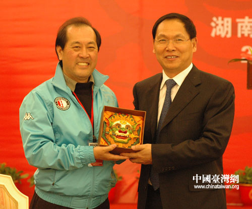 湖南省臺辦主任龔文密及部分湖南省政府有關(guān)部門領(lǐng)導(dǎo)、省臺辦領(lǐng)導(dǎo)參加了會見。會見后,雙方互贈了禮物,隨后湖南省人民政府設(shè)歡迎晚宴,招待遠(yuǎn)道而來的寶島貴客。(李杰)