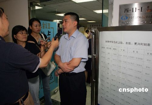 九月六日,首次兩岸中秋包機在上海開始出票,上航上海營業部副總經理夏友培表示,基于油價上漲等因素,上海至臺北航線經濟艙往返票價為四千七百元人民幣,比春節包機票價上漲了四百元左右。兩岸包機只有常態化,航空業者才能贏利。 中新社發 潘索菲 攝