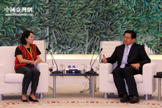 8月20日商務(wù)部部長(zhǎng)陳德銘會(huì)見臺(tái)灣少數(shù)民族代表團(tuán)團(tuán)長(zhǎng)高金素梅一行。(中國臺(tái)灣網(wǎng) 鐘寶華 攝)