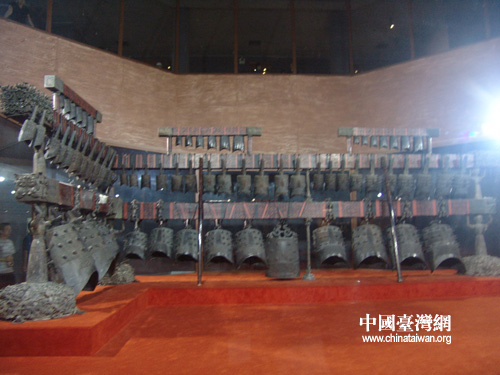 在曾侯乙墓廳里最讓臺(tái)灣團(tuán)成員為之驚嘆的要數(shù)該廳的鎮(zhèn)廳之寶曾侯乙編鐘。據(jù)導(dǎo)游介紹,曾侯乙編鐘是目前為止在全國(guó)樂器規(guī)模最大、保存最為完好、樂器功能性最大的編鐘。第一次看到如此壯觀的編鐘,臺(tái)灣團(tuán)成員們紛紛拍照留念,連嘆它的龐大。