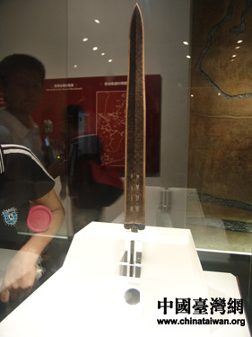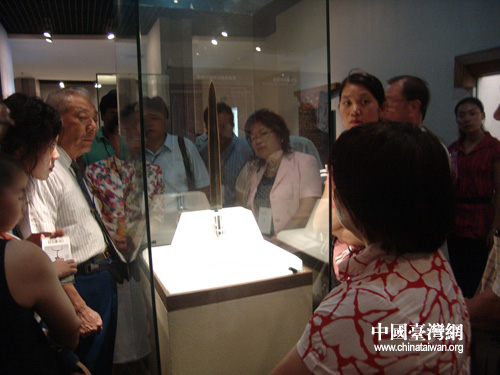 臺(tái)灣團(tuán)成員細(xì)細(xì)端詳傳說中的越王勾踐劍。(攝影:陳寧)
