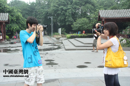 拍拍客男女主角:北京交通大學王子碩&臺灣大學李曉蓉(中國臺灣 李丹 攝)