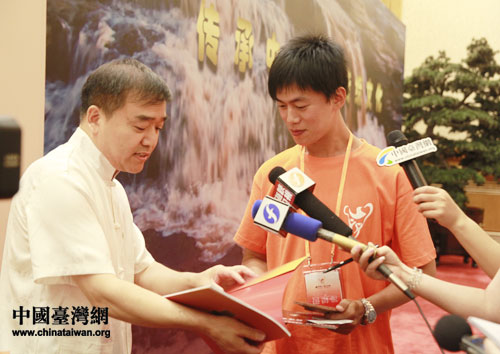 中國臺灣網(wǎng)7月12日北京消息 “自來到展廳,我就一直待在景泰藍(lán)手工藝品展區(qū),和鐘師傅探討有關(guān)景泰藍(lán)與建筑美學(xué)的問題。”來自臺灣成功大學(xué)建筑研究所的姚伯勛博士生告訴記者。主修建筑學(xué)的他對景泰藍(lán)頗感興趣,甚至達(dá)到癡迷的程度,不論是建筑美學(xué)界,還是非物質(zhì)文化遺產(chǎn)方面的問題,他都回答得頭頭是道。