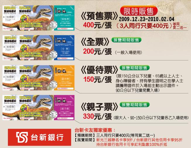 票券種類及價格: