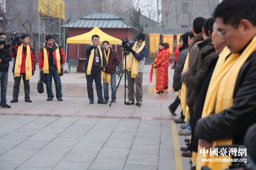 圖為臺(tái)灣媒體記者準(zhǔn)備進(jìn)行謁拜黃帝儀式(中國臺(tái)灣網(wǎng) 徐維彬 攝)