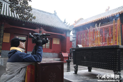 圖為臺(tái)灣媒體記者在黃帝故里取景拍攝(中國臺(tái)灣網(wǎng) 徐維彬 攝)