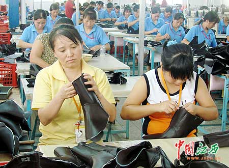 黎川另一家臺(tái)資制鞋企業(yè)祥昱鞋業(yè)公司06年9月落戶,現(xiàn)部分建成投產(chǎn),上半年完成工業(yè)產(chǎn)值2000多萬元。(中國江西新聞網(wǎng)記者 王凱 攝) |
