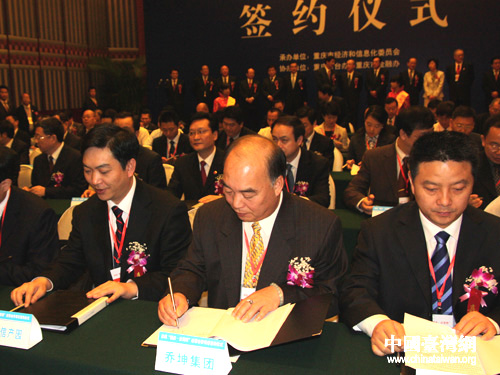 記者在現(xiàn)場(chǎng)看到,參加簽約的有鴻海集團(tuán)、喬坤集團(tuán)等知名大型臺(tái)企,簽約項(xiàng)目涉及高新技術(shù)產(chǎn)業(yè)、裝備制造業(yè)、農(nóng)業(yè)、汽摩、房地產(chǎn)、創(chuàng)意設(shè)計(jì)、旅游、物流以及金融等眾多行業(yè)。據(jù)悉,這些項(xiàng)目均分布在重慶的北部新區(qū)、萬州、江北等17個(gè)區(qū)縣和園區(qū)。