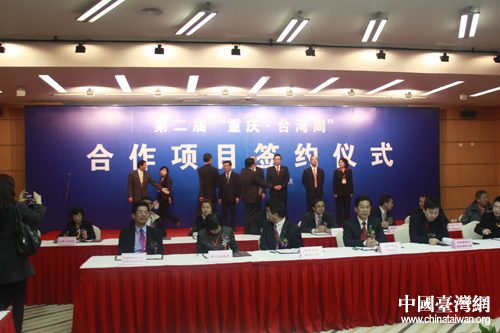 合作項(xiàng)目簽約儀式上渝臺(tái)雙方代表現(xiàn)場(chǎng)簽約。(中國(guó)臺(tái)灣網(wǎng) 程軼文攝)