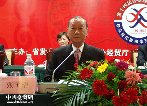 中國(guó)臺(tái)灣網(wǎng)9月27日濰坊消息 作為“第十四屆魯臺(tái)經(jīng)貿(mào)洽談會(huì)”的亮點(diǎn)活動(dòng)之一,“魯臺(tái)現(xiàn)代服務(wù)業(yè)對(duì)接洽談會(huì)”于昨天下午在濰坊舉行。山東省發(fā)改委副主任閆作溪、臺(tái)灣新黨主席郁慕明、臺(tái)灣商業(yè)總會(huì)理事長(zhǎng)張平沼等出席洽談會(huì)并致辭。
