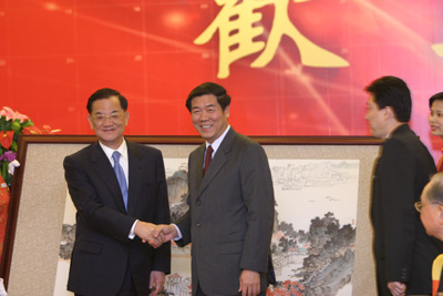 會后,連戰與廈門市政府相互交換禮物,廈門市政府并設宴款待臺灣貴賓。(謝曉萍 徐麗麟)