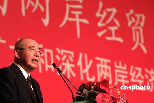 12月20日,中國國民黨主席吳伯雄在上海出席第四屆兩岸經貿文化論壇并發表演講。 中新社發 湯彥俊 攝