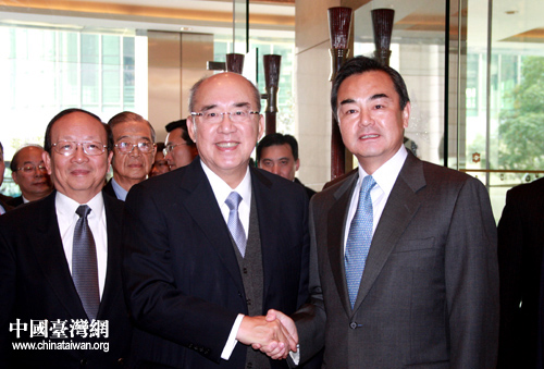 中共中央臺辦主任王毅迎接中國國民黨主席吳伯雄一行。中國臺灣網(wǎng) 李徽 攝