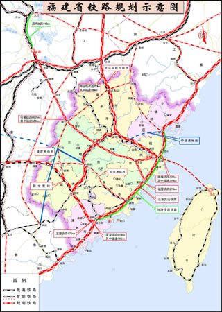 “369海峽鐵路網”即:建設沿海、杭閩廣、浦建龍梅等“三縱”;北京-合肥-福州-臺北、昆明-漳州-廈門-高雄、衢州-寧德、橫峰-福州、向塘-莆田、長汀-泉州等 “六橫”;形成連接海峽經濟區的九個環狀鐵路。
