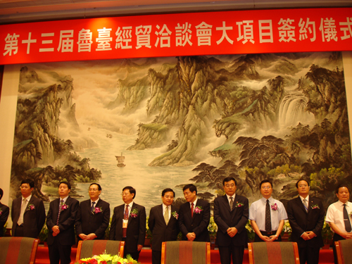 中國臺灣網(wǎng)9月20日濰坊消息 “第十三屆魯臺經(jīng)貿(mào)洽談會”大項(xiàng)目簽約儀式于昨日下午在濰坊舉行。山東省直有關(guān)部門、有關(guān)市政府負(fù)責(zé)人及臺灣女企業(yè)家協(xié)會理事長馬愛珍等簽約雙方代表參加了此次儀式。