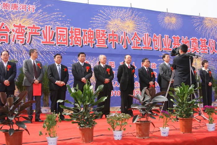 海協(xié)會王富卿副會長、河南省省長助理盧大偉、南陽市委書記黃興維、唐河縣委書記和學(xué)民共同為南陽市臺灣產(chǎn)業(yè)園進行揭牌,現(xiàn)場掌聲雷動。