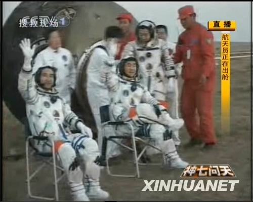 9月28日,返回艙門打開,航天員出艙。新華社發(電視截圖)