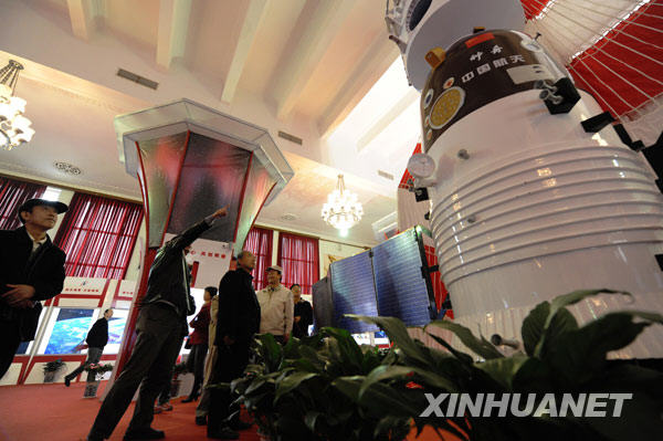 11月11日,觀眾在參觀神舟七號飛船1:3模型。