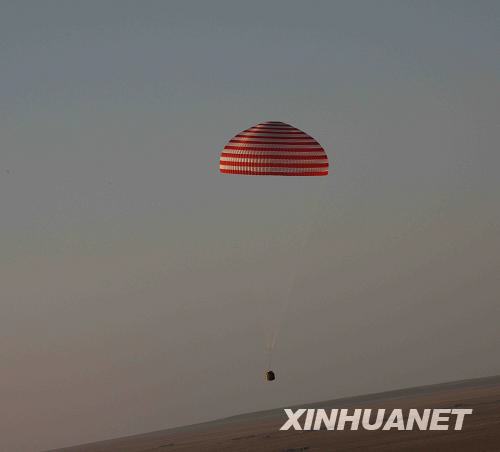 9月28日,神七返回艙成功著陸。新華社發(fā)(電視截圖)