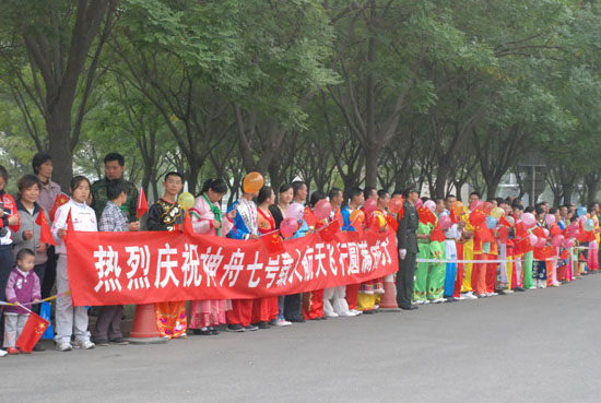 熱情群眾歡迎航天英雄返回航天城