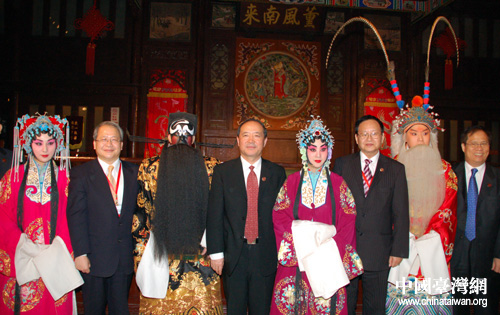 晚會結束后,張漢文會長(右三)等臺企聯負責人與演員合影留念。(圖片攝影:田云鵬)