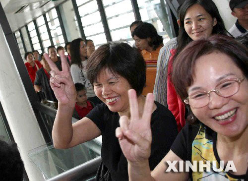 9月29日13時(shí)25分許,自臺(tái)北起飛的臺(tái)灣長(zhǎng)榮航空公司BR1712航班,載著309位乘客抵達(dá)上海浦東國(guó)際機(jī)場(chǎng)。這是2006年兩岸中秋包機(jī)飛抵大陸的首個(gè)航班,標(biāo)志著兩岸客運(yùn)包機(jī)節(jié)日化的正式啟動(dòng)。(新華社記者 張明 攝)
