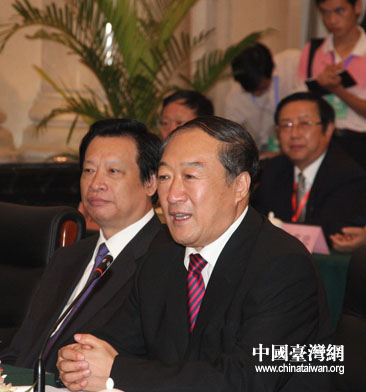 中國國民黨副主席蔣孝嚴參加會見并講話。(中國臺灣網(wǎng) 鐘寶華 攝) |