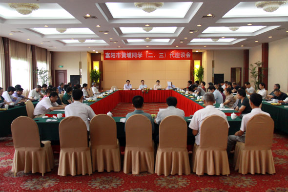 | 6月10日上午,富陽市黃埔軍校同學(xué)會為慶祝黃埔軍校建校85周年、抗戰(zhàn)勝利64周年,召開了富陽市黃埔同學(xué)二、三代座談會。市委統(tǒng)戰(zhàn)部副部長葉臣歡同志到會祝賀,會議由富陽市黃埔軍校同學(xué)會秘書長王江龍主持。