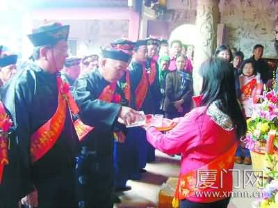 2月27日,臺灣臺南仁德鄉(xiāng)大甲慈濟(jì)宮近百名信眾來到廈門灌口深青深澤宮尋根進(jìn)香。臺南縣的許先生告訴我們:在臺灣保生大帝擁有非常廣泛的信眾,在當(dāng)?shù)兀篙厒兪来鄠魅实锣l(xiāng)的保生大帝信仰是從深青深澤宮分靈過去的,為了找到祖地,他們費(fèi)盡了周折,因此這次進(jìn)香,顯得非常隆重,提前幾個(gè)月就進(jìn)行了籌備。為了秉承中華民族的文化傳統(tǒng),他們特地為一些主要人員趕制了一整套的中國古代服裝,以配合祭典的氛圍,而且還特制了到祖國大陸進(jìn)香的專用旗幟。臺灣的蘇先生還告訴我們,由于這次進(jìn)香趕不上春節(jié)包機(jī),近百號的人只得到香港轉(zhuǎn)機(jī)。路途繞了一大圈,但這一點(diǎn)說明了大家對祖地的向往,同時(shí)也盼望能早日三通。