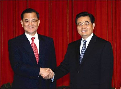2005年4月29日,胡錦濤與連戰握手,實現了兩黨主要領導人歷史性的會見,標志著兩黨的交往進入了新的發展階段。