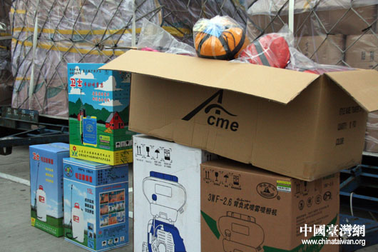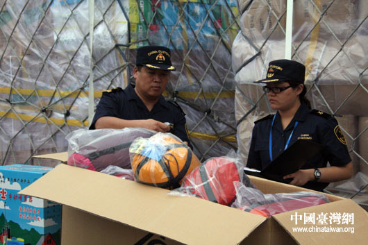 海關人士檢查即將啟運的救災物資。(中國臺灣網(wǎng) 鐘寶華 攝)