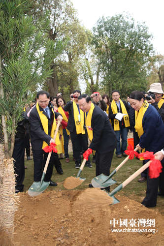 3日上午,來湘參加第二屆在臺湘籍后裔湖南行活動的190余名臺灣鄉(xiāng)親與大陸同胞一起齊聚炎帝陵,兩岸同胞在炎帝陵揮鏟揚土共植同根樹,增色秀美山川,表達兩岸同胞血脈相連的親情。(中國臺灣網(wǎng) 楊麗 攝)