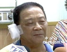 臺灣屏東縣長曹啟鴻昨天中午到萬丹鄉勘災,遭到一名施姓災民用三字經嗆聲,不料和曹啟鴻同行的民進黨籍縣議員盧同協卻夸張地拿起鐵椅和石塊砸向嗆聲災民,造成這名災民右耳朵撕裂傷,送醫急救右耳縫了12針。