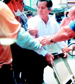 屏東縣議員盧同協(xié)還一度欲拿鐵椅砸施松井。臺(tái)灣《聯(lián)合報(bào)》圖