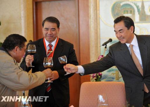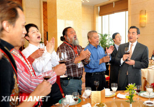 當(dāng)日,中共中央臺(tái)辦、國務(wù)院臺(tái)辦主任王毅會(huì)見并宴請來北京出席“臺(tái)灣少數(shù)民族歷史文化展”的臺(tái)灣少數(shù)民族代表人士訪問團(tuán)。新華社記者 金良快 攝