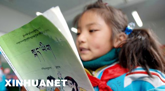 資料圖片:西藏自治區多年來重視藏語文的教學,使每個藏族孩子從小學一年級到高中三年級都能接受藏語教育。在中小學教育期間,藏語教學在1775課時以上,全區從事藏語教學的教師超過1.55萬人,藏語成為藏族孩子的必修課。新華社記者 普布扎西 攝