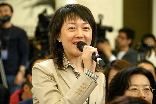 3月18日上午十一屆全國人大一次會議閉幕后,國務院總理溫家寶在人民大會堂三樓中央大廳與采訪十一屆全國人大一次會議的中外記者見面并回答記者提出的問題。圖為人民日報記者在提問。新華網 郭毅 攝