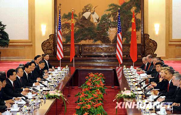 17日,中美兩國元首在北京再次握手。胡錦濤主席在兩國元首共同會見記者時的致辭中說:“我和奧巴馬總統(tǒng)都積極評價美國新一屆政府就職以來中美關(guān)系的發(fā)展,一致同意堅(jiān)持從戰(zhàn)略的高度和長遠(yuǎn)的角度出發(fā),加強(qiáng)對話、交流、合作,共同努力建設(shè)21世紀(jì)積極合作全面的中美關(guān)系。”